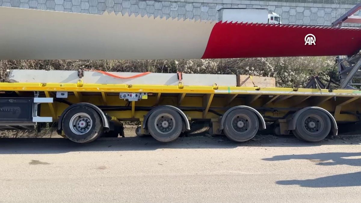 Bursa'da rüzgar türbinin kanadını taşıyan tır su kanalına düştü