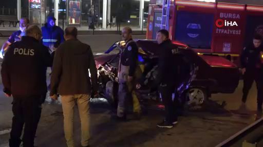 Bursa’da otomobil Bursaray'ın bariyerine çarptı. Çarpmanın etkisiyle savrulan otomobilde bulunan 2 kişi yaralandı.