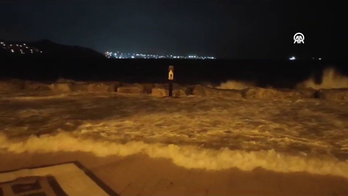 Bursa'da sağanak nedeniyle deniz taştı, sahil bandı su altında kaldı