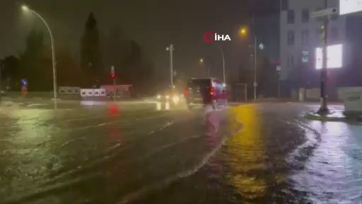 Bursa'da sağanak sonrası rögarların taşması sonucu bir cadde göle döndü.