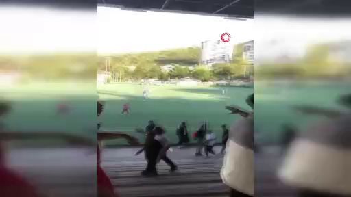 Bursa’nın Yıldırım ilçesinde Gemlikspor ile Erikligücü arasında oynanan bölgesel amatör lig maçında futbolcular arasında artan tansiyon taraftarlara sıçradı. Taraftalar arasında taş ve su şişeleri havada uçuşurken, olaya son noktayı polis koydu.
