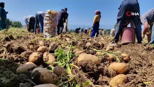Bursa'nın İnegöl ilçesinde sarı altın olarak nitelendirilen patatesin hasadı başladı. Sözleşmeli tarlada kilosu 6.5 liraya bireysel hasatta ise kilosu 12 ila 13 lira arasında satılıyor.