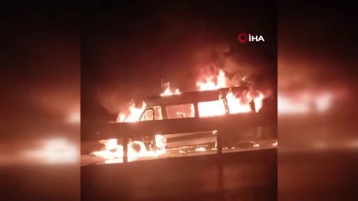 Bursa'da servis minibüsü alev alev yandı