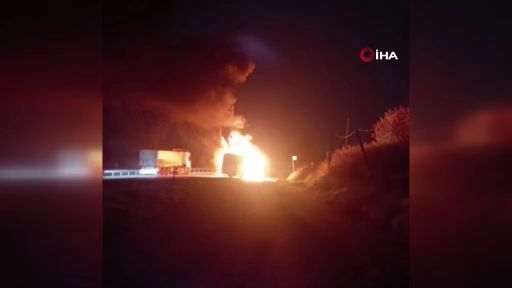 Bursa'da işçileri taşıyan servis otobüsü, alev topuna döndü.