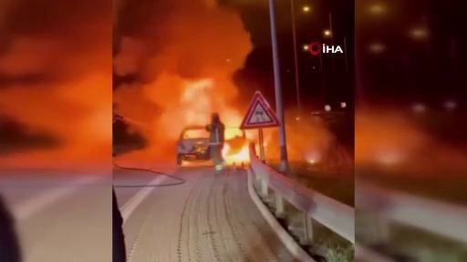 Bursa'da bir otomobilin motorunda seyir halindeyken yangın çıktı, Alev topuna dönen otomobil kullanılamaz hale geldi.