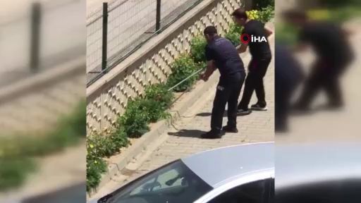 Bursa'nın İnegöl ilçesinde, bir site bahçesine giren yılan, itfaiye ekiplerince yakalanıp doğaya bırakıldı. Ekiplerin yılanı yakalamaya çalıştığı anlar, site sakinleri tarafından cep telefonuyla görüntülendi.
