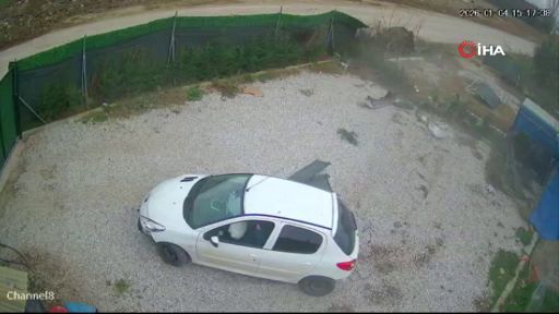 Bursa'da direksiyon hakimiyetini kaybeden bir sürücü, otomobiliyle bir hobi evinin bahçesine girdi. Sürünün ölümden döndüğü kaza anı sniye saniye güvenlik kameralarına yansıdı.