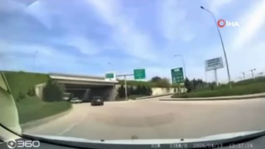 Bursa Şehir Hastanesi Otoban Bağlantı Kavşağı’nda seyir halinde olan bir sürücünün karşısına, ters yönden gelen başka bir araç çıktı. Bursa-Ankara otobanı istikametine geçiş yapmak isteyen sürücünün tehlikeli manevrası, trafikte paniğe neden oldu.
