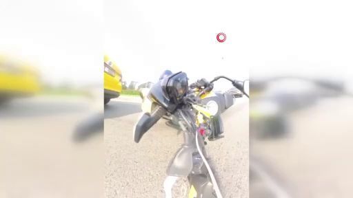Bursa'da seyir halindeki motosiklet sürücüsü, önünde duran taksiyi görmeyip çarptı. O anlar motosiklet sürücüsünün aksiyon kamerasına yansıdı.