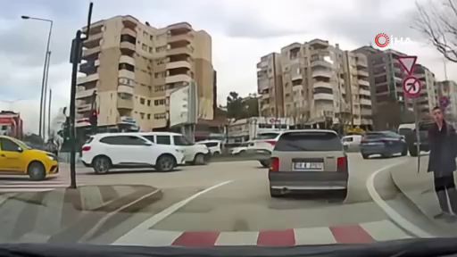 Bursa'nın Nilüfer ilçesinde trafikte yaşanan anlamlı bir an, bir aracın kamerasına yansıdı.
