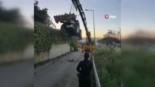 Bursa'da vinçten düşerek maddi hasar gören iş makinesinin düşme anına ait görüntüler ortaya çıktı. Olayda şans eseri yaralanan olmadı.