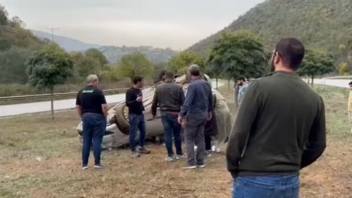 Bursa’da yağışlı havanın etkisiyle kontrolden çıkan otomobil takla attı. Vatandaşların yardımıyla çıkarılan genç çift hafif yaralanırken, kazayla ilgili soruşturma başlatıldı.