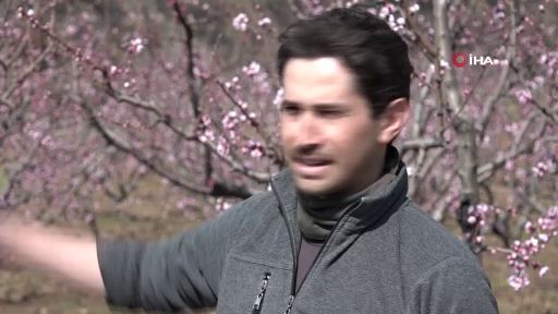 Bursa'nın Gürsü ilçesinde geçen yıl çıkan yangında yüksek kesimlerde alevlerin arasında yemyeşil kalan iki şeftali bahçesi, bu yıl açan pembe çiçeklerle renklendi.