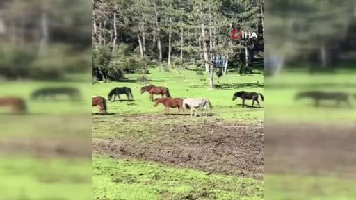 Bursa’nın yüksek kesimlerinde doğa, bu kez kartpostallık bir manzaraya sahne oldu. Ömeraltı Yaylası’nda devriye görevini sürdüren orman muhafaza ekipleri, daha önce yalnızca fotokapan görüntülerinde rastlanan yılkı atlarıyla karşılaştı.