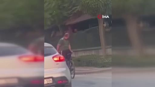 Bursa’da bir vatandaş, trafiğin aktığı caddede bisikletine ters binerek ilerledi. O anları gören sürücüler kısa süreli şok geçirse de cep telefonu kameraları ile kaydetti.