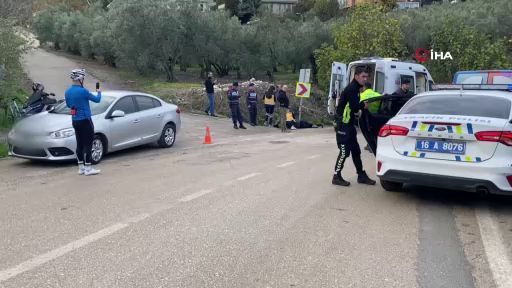 Bursa'nın Mudanya ilçesinde meydana gelen kazada bir bisiklet sürücüsü ağır yaralandı. Bisikletli gencin karşı şeride geçip otomobile çarpmamak için su giderine savrulduğu anlar kameraya yansıdı. Bisikletli genç yaralı olarak kurtuldu.