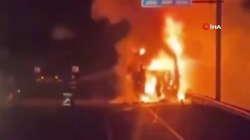 İtfaiyenin müdahalesi ile yangın söndürülürken yolcu otobüsü tamamen yanarak kullanılamaz hale geldi.
