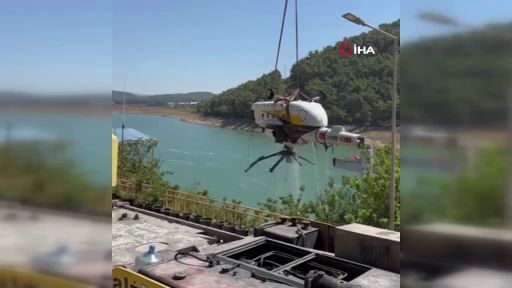 İzmir'de yangın söndürme çalışmalarında Tahtalı Barajı'na düşen ve 3 mürettebatın hayatını kaybettiği helikopter kazasında, enkazın sudan çıkarıldığı anlara ait görüntüler paylaşıldı.