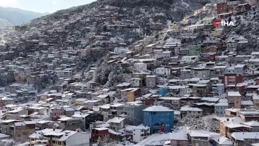 Bursa’da şehir merkezine yağan kar yağışıyla birlikte Uludağ'ın eteklerindeki tarihi evler, kartpostallık görüntüler oluşturdu.