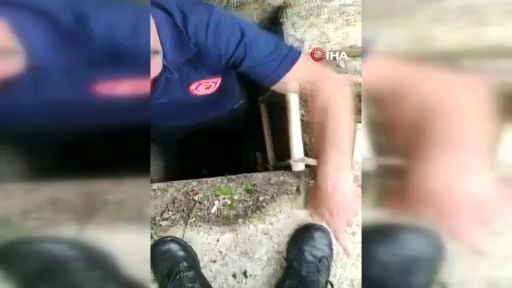 Kuyuda mahsur kalan kedileri itfaiye ekipleri kurtardı