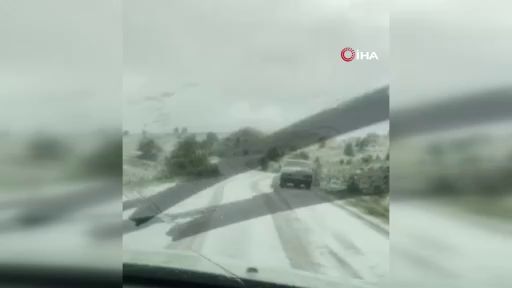 Malatya’nın Hekimhan ilçesinde etkili olan dolu yağışı sonra ilçe beyaza bürünürken, ulaşımda zorluklar yaşandı çok sayıda araç yolda kaldı.