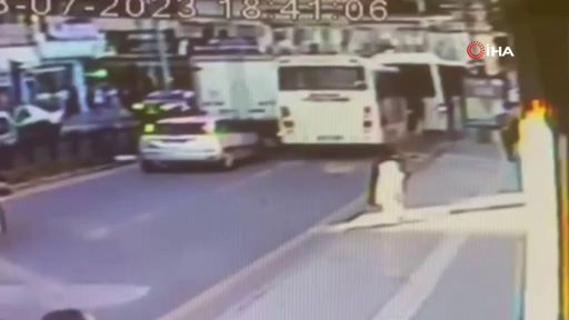Nevşehir'de freni patlayan halk otobüsü kırmızı ışıkta duran halk otobüsüne çaptı. Kazada 9 kişi yaralanırken, kaza anı güvenlik kamerasına yansıdı.