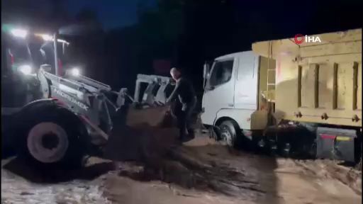 Nevşehir’de selde mahsur kalan şoför, iş makinasıyla kurtarıldı
