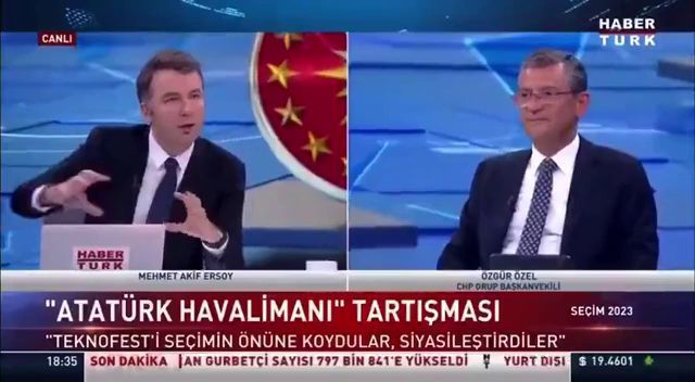 Habertürk'te canlı yayına '1 saat için' çağrılan CHP Grup Başkanvekili Özgür Özel'in programı 34'üncü dakikada sonlandırıldı. Sunucu Mehmet Akif Ersoy'un 'reklam' dediği yayın sonrası Erdoğan'ın Konya'daki açılış töreni verildi.
