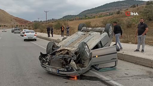 Tokat'ta kaldırıma çarpan araç takla attı: 3 yaralı